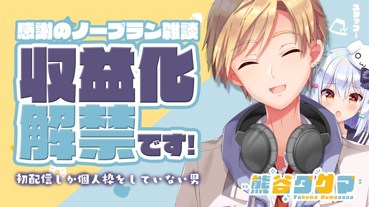 どうも、お世話になっております🐻🍨 初配信からはや数日……😩 収益化が通ったそうなので、収益化解禁配信をします❤️ ノープランで喋ります!!!!!! 🍨【収益化解禁】感謝のノープラン雑談。【#熊谷タクマ/のりプロ所属】 🍨1月15日23時~24時 youtube.com/channel/UCCXME… 配信タグ▶#熊谷タクマ