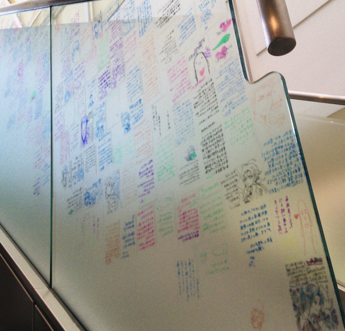 会期中、館内エントランスの階段には、ご来館の記念にコメントを残していただけます。閉館後に拝見するのが楽しみです。ゆるーく当館恒例行事となってきましたので、お越しの際にはお気軽にご参加ください。(ちなみに文アルタイアップの感想にはカッパワニを添える方が多いです!) #田端で文アル