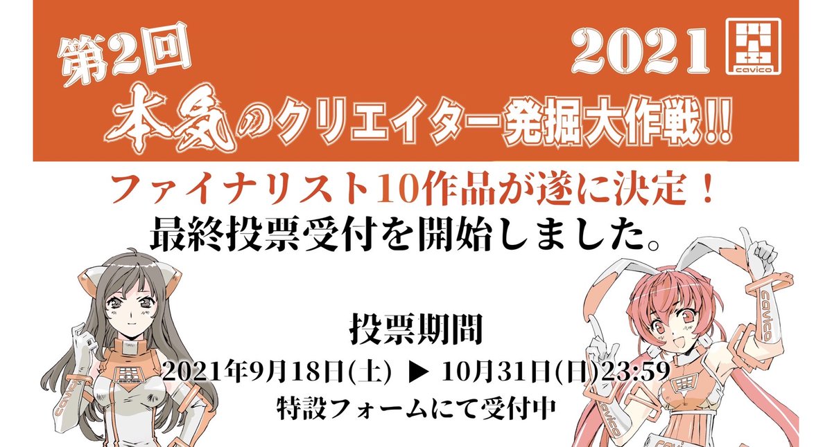 公式ブログをアップしました。今回は第2回「本気のクリエイター発掘大作戦」2021 予選通過作品の発表です。ぜひご覧ください。 note.com/cavico/n/n6477… #キャビコ #発掘大作戦