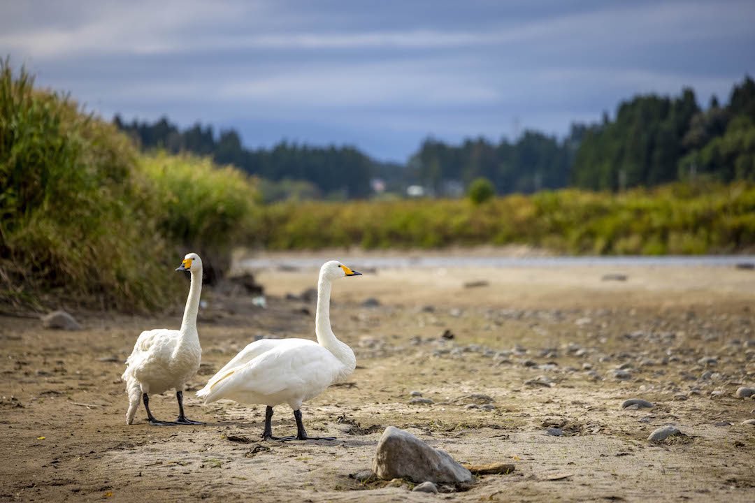 奥入瀬川に架かる橋の下にいる白鳥🦢