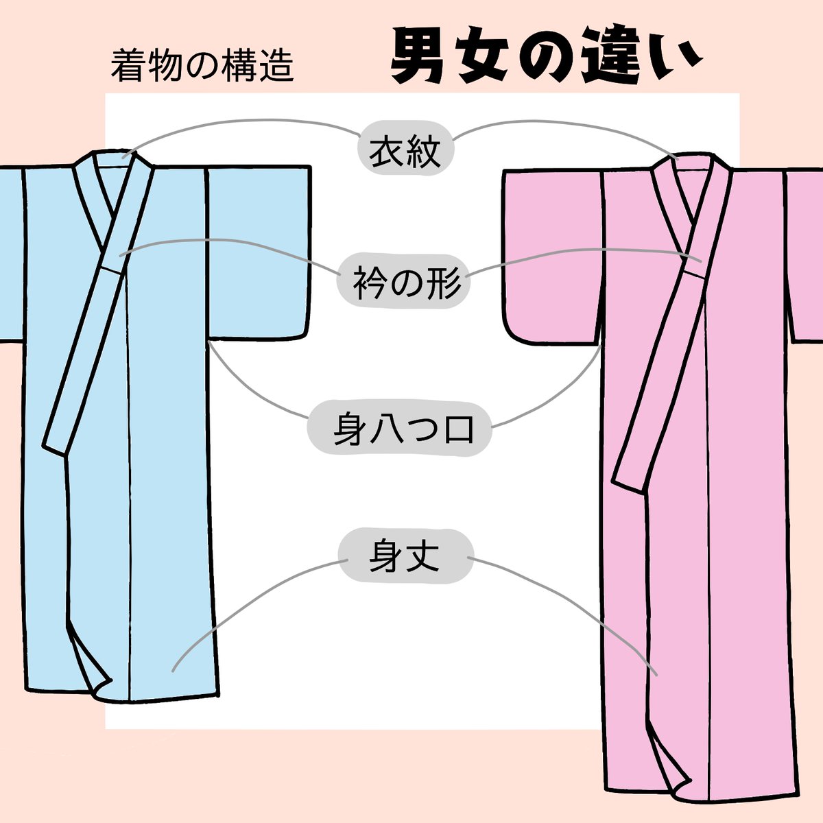 【#着物 男女の構造のちがい】