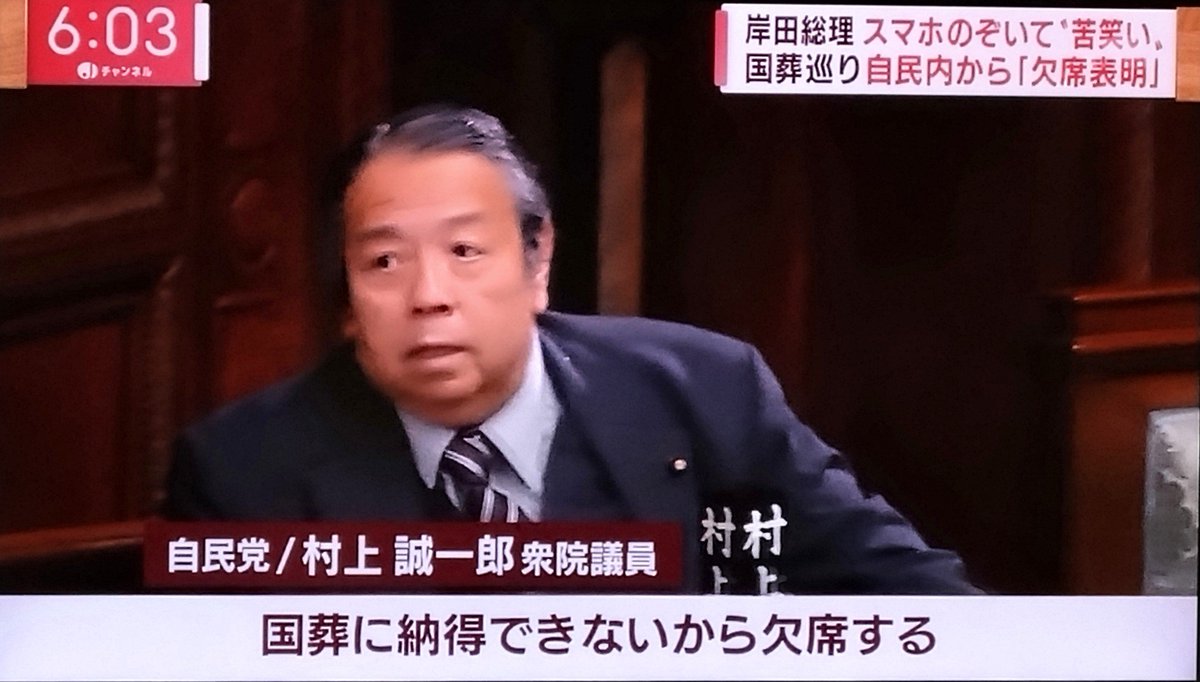 国葬欠席の村上さん。