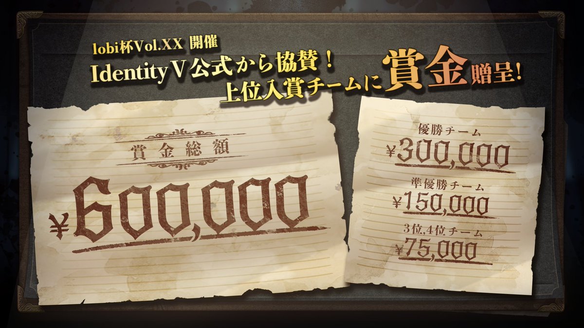今回から上位入賞チームにIdentity V公式の協賛により賞金を贈呈!賞金総額60万円💥