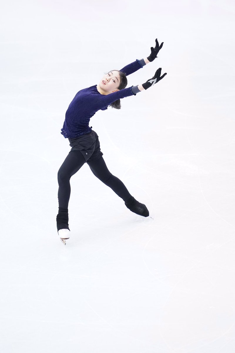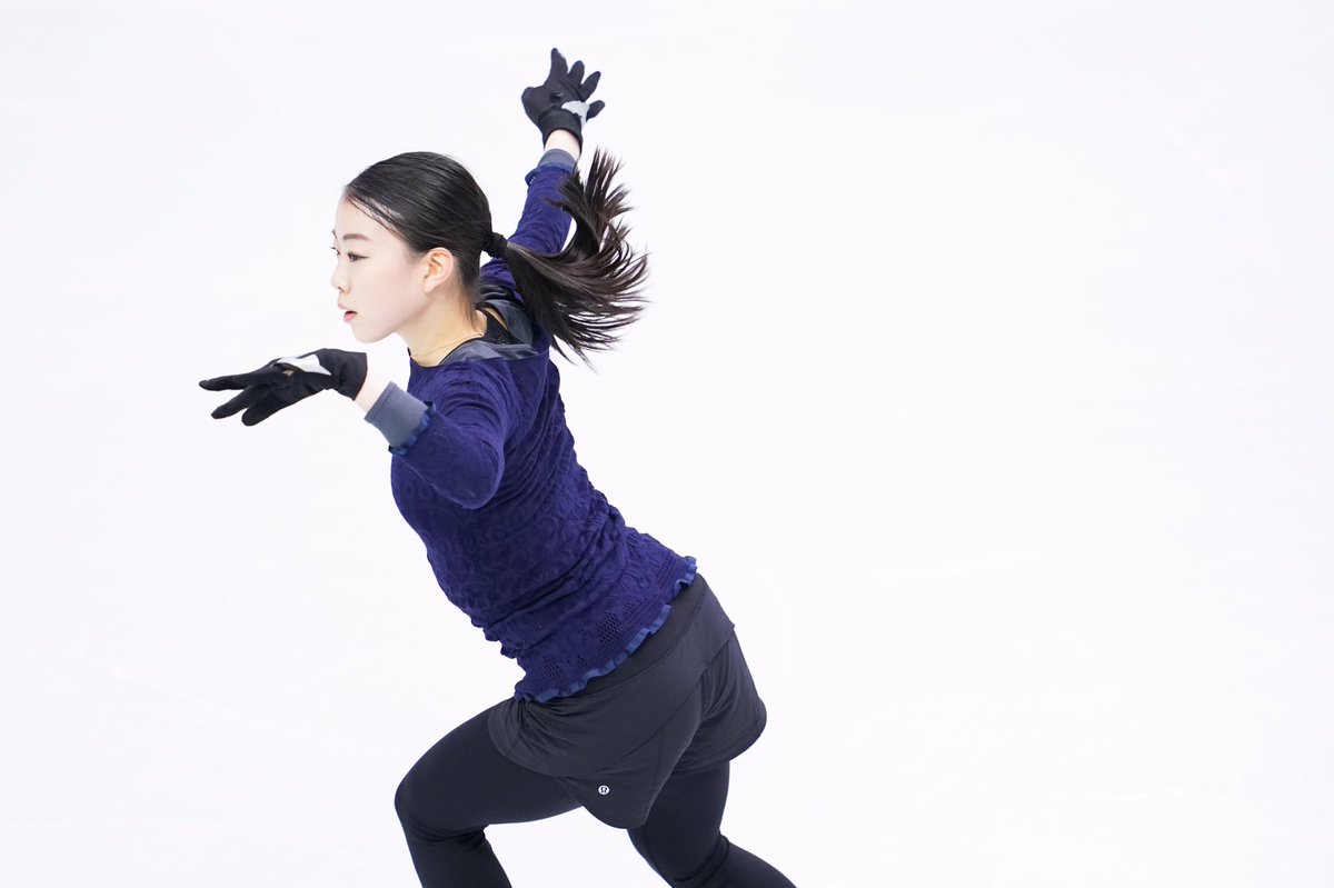 得意の #トリプルアクセル は何度も綺麗に着氷!連覇へ向け入念に調整を行った。練習後の滑走順抽選では4番滑走に決まった。