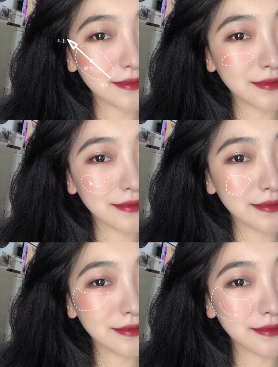 顔の形別🇨🇳✨チークの入れ方のポイント!! チークを入れるとき、色や雰囲気に重点を置いてる方が多いと思います🎶 そこに、顔の形別に合ったチークの入れ方を取り入れることで、立体感が出たり、コンプレックス解消にもなります❤︎ 是非取り入れてみてね!! #紅美女 #中国メイク