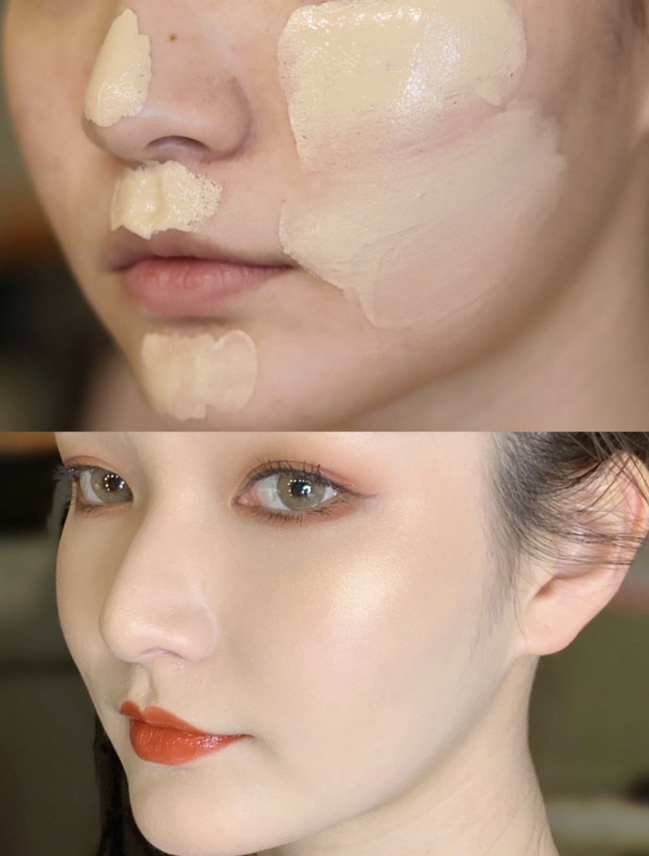 夏もメイク直しいらず🇨🇳✨ 中国で話題の『サンドイッチメイク法』のご紹介!! ①まずは肌を保湿。乾燥はよれの原因に!! ②スプレーを1,2プッシュと、リキッドファンデを混ぜ、スポンジで広げる ③ルースパウダーをはたいて、仕上げにミストを🎶 ブラシにミストを+しても効果◎ #紅美女 #中国メイク