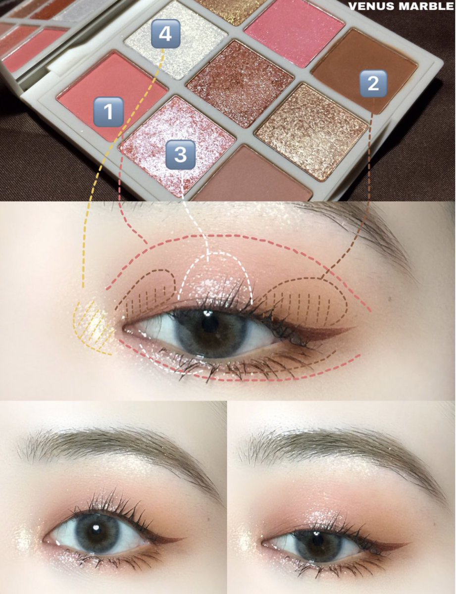中国美女のアイシャドウの塗り方基本🇨🇳 ✔️step ①薄い色をアイホールに広げる ②瞼の2-5にメインの色を塗る ③濃いめの色を重ねる ④仕上げにグリッターやラメ入りを使って光を入れる たった4ステップでトレンドアイに👀✨ ラメやグリッターで季節感を出すのがおススメです❤️ #紅美女 #中国メイク