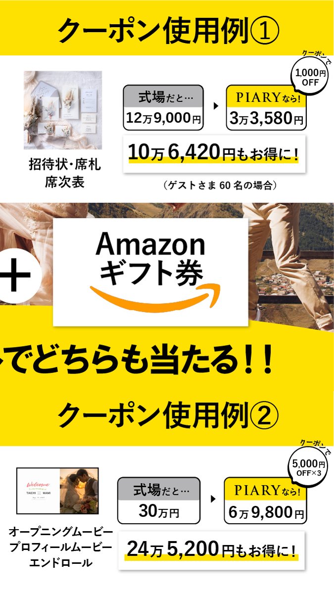 PIARYで使える5万円分のクーポンとAmazonギフト券500円分が 合計どどーんと!50名様に当たる!!