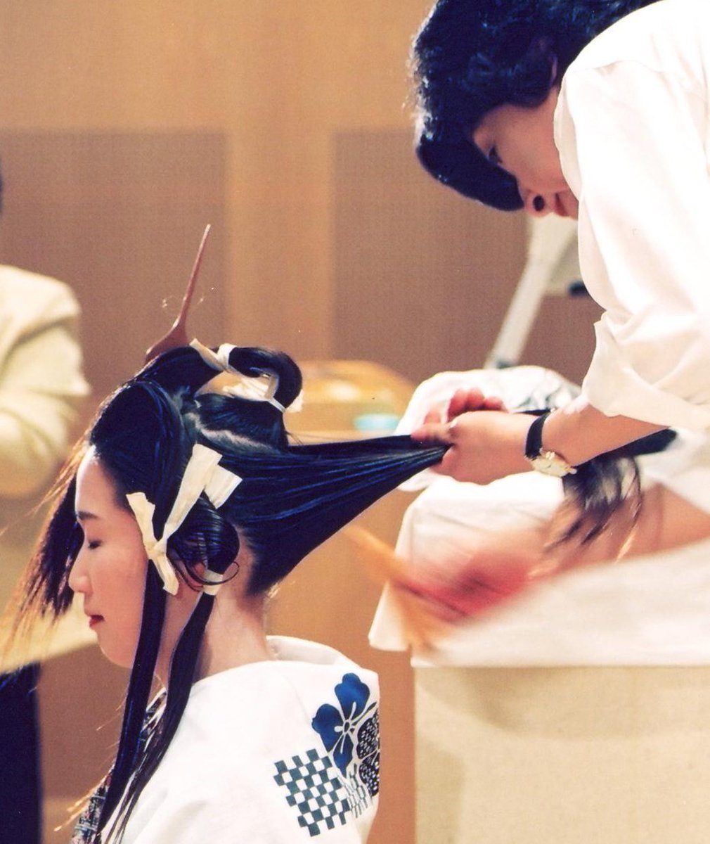 【イベント情報】ポーラ美術館「よそおいの近代」展の関連イベントとして、結髪実演を行います。銀杏返しから、二百三高地髷に結い直す過程をご覧いただけます。9/2(土)14:00開始、定員は先着100名様。くわしくはgoo.gl/Be4U2i #日本髪 #結髪