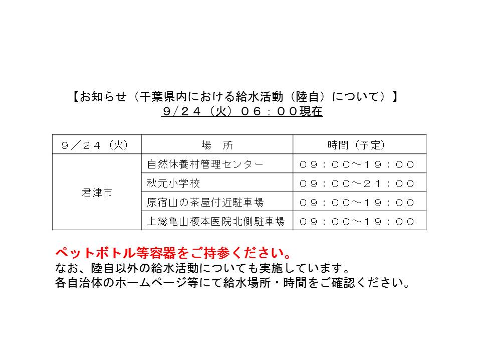 本日(9/17(火))、陸自が実施する給水活動についてお知らせします。