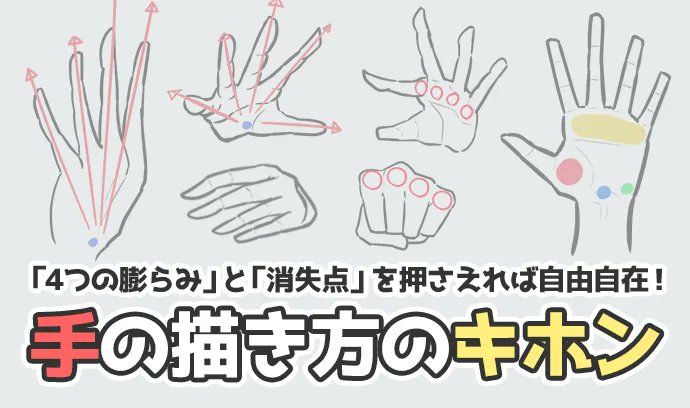 「4つの膨らみ」と「消失点」を押さえれば自由自在!手の描き方のキホン | いちあっぷ ichi-up.net/2016/140 #絵が上手くなる記事はコレ
