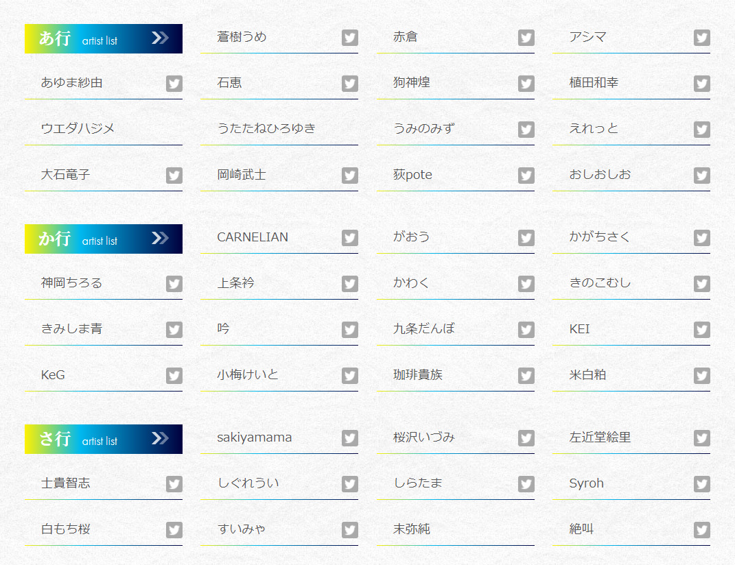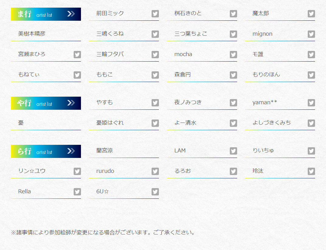 そしてまずは大きな情報として、「参加絵師一覧」をどどんと公開です。今年も百余名の、幅広いフィールドにてご活躍中の先生方にお集まりいただきました。既に完成済みの作品を眺めると、個性や独創性に目を見張るとても面白い回になりそうです。ご期待ください! #絵師100人展