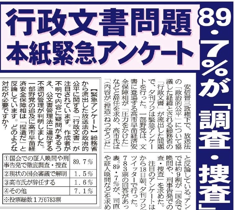 総務省の「行政文書」流出問題で、緊急アンケート