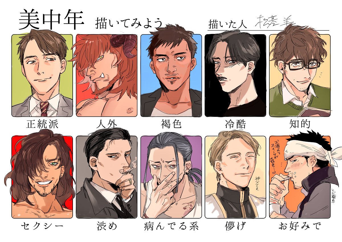 練習にお借りしました!所々老年組の面影ある人がいる気がする #美中年描いてみよう