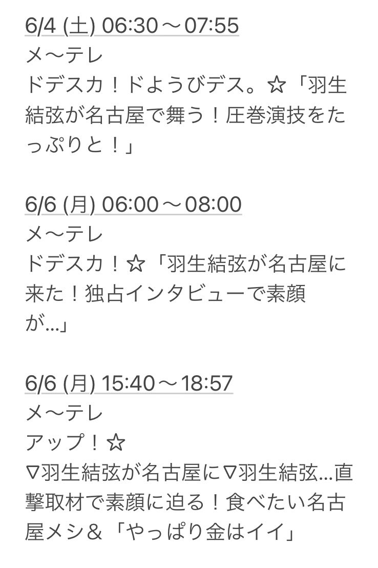 #羽TV予定 #羽予定