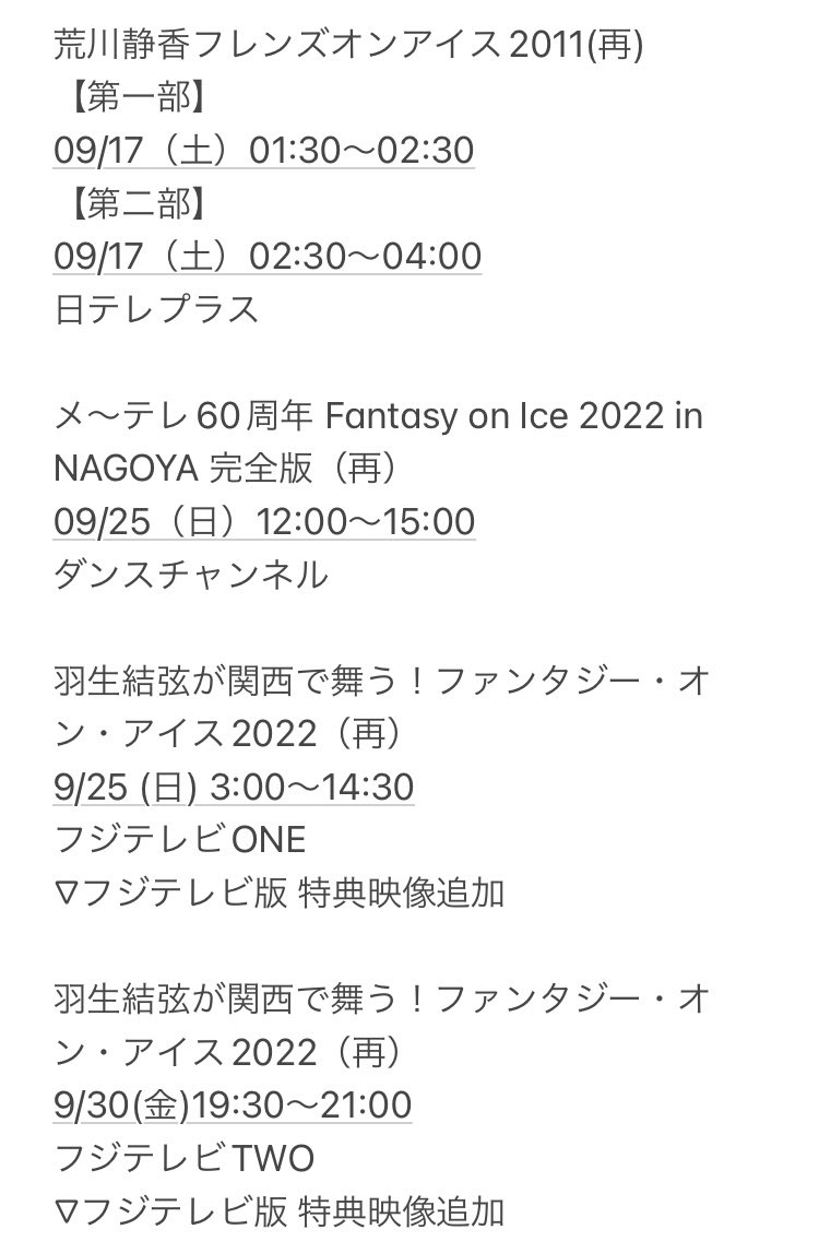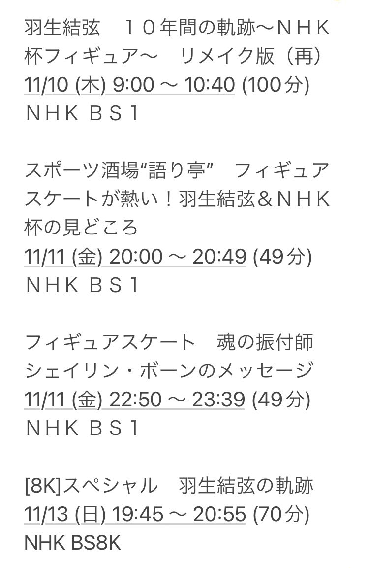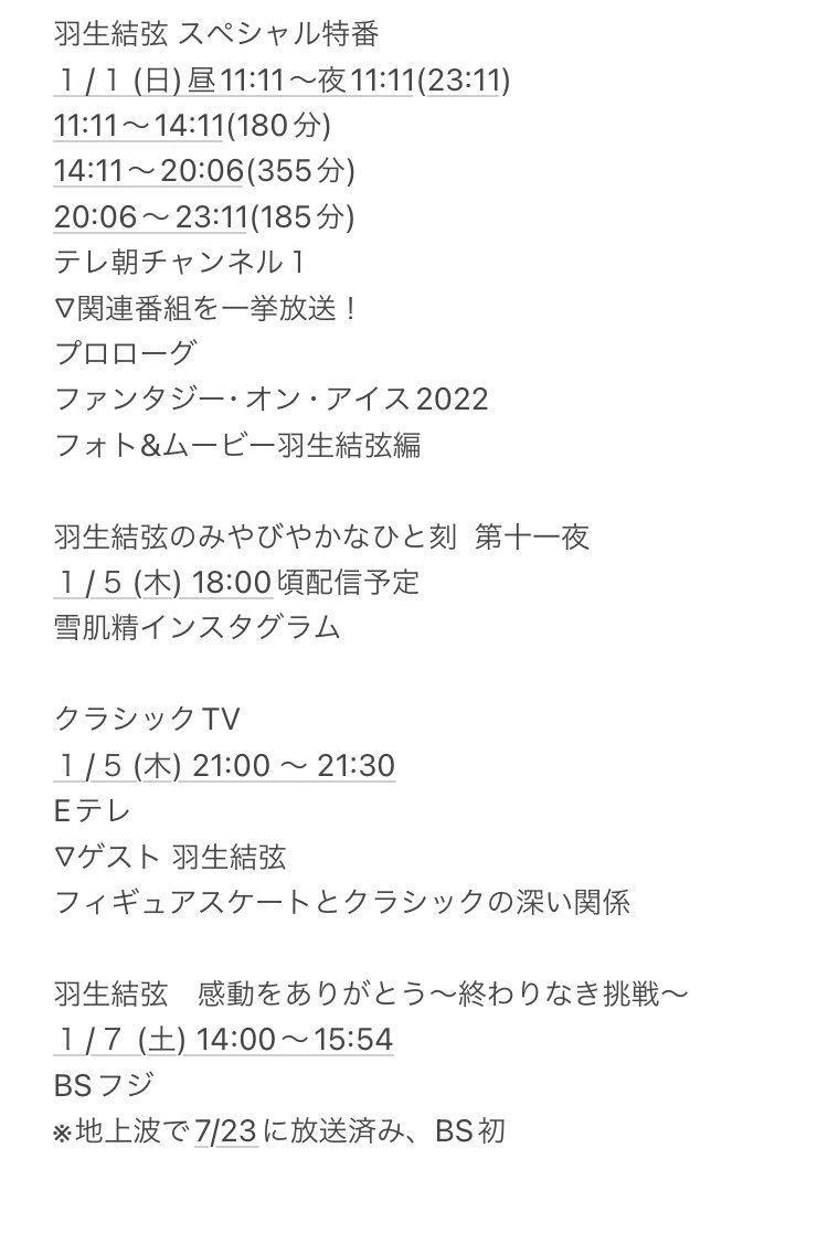 羽生選手関連番組 2023年1月放送予定 (1/7更新)