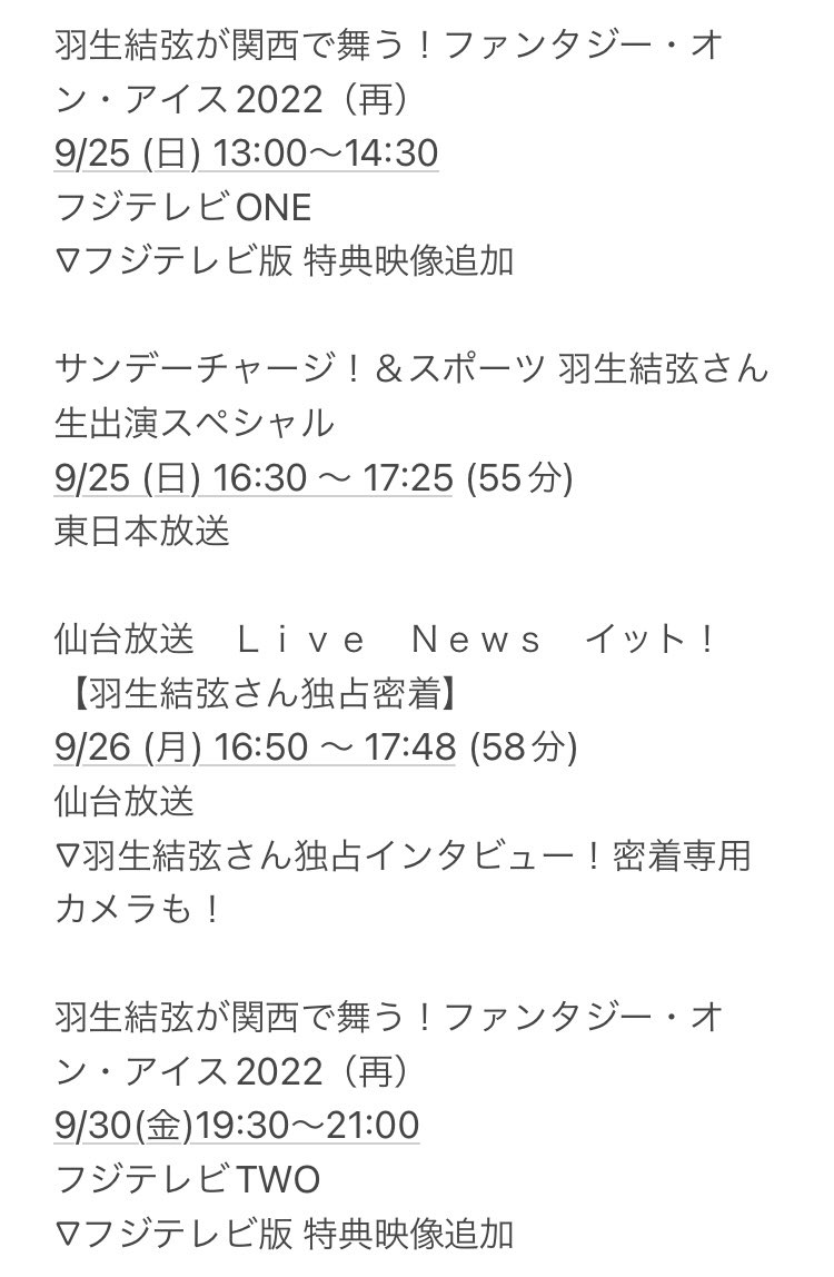 「先日、TBS制作「バース・デイ」へのお問い合わせ・ご要望をいただきました。7月23日にTBSで放送されました羽生結弦さんの回がRKBで放送日が決定しましたのでお知らせいたします。9月21日(水)午前11時〜」
