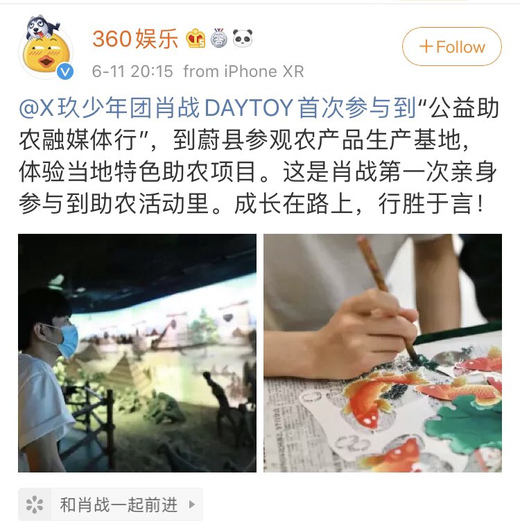200611 #XiaoZhan 娱乐有饭 weibo update