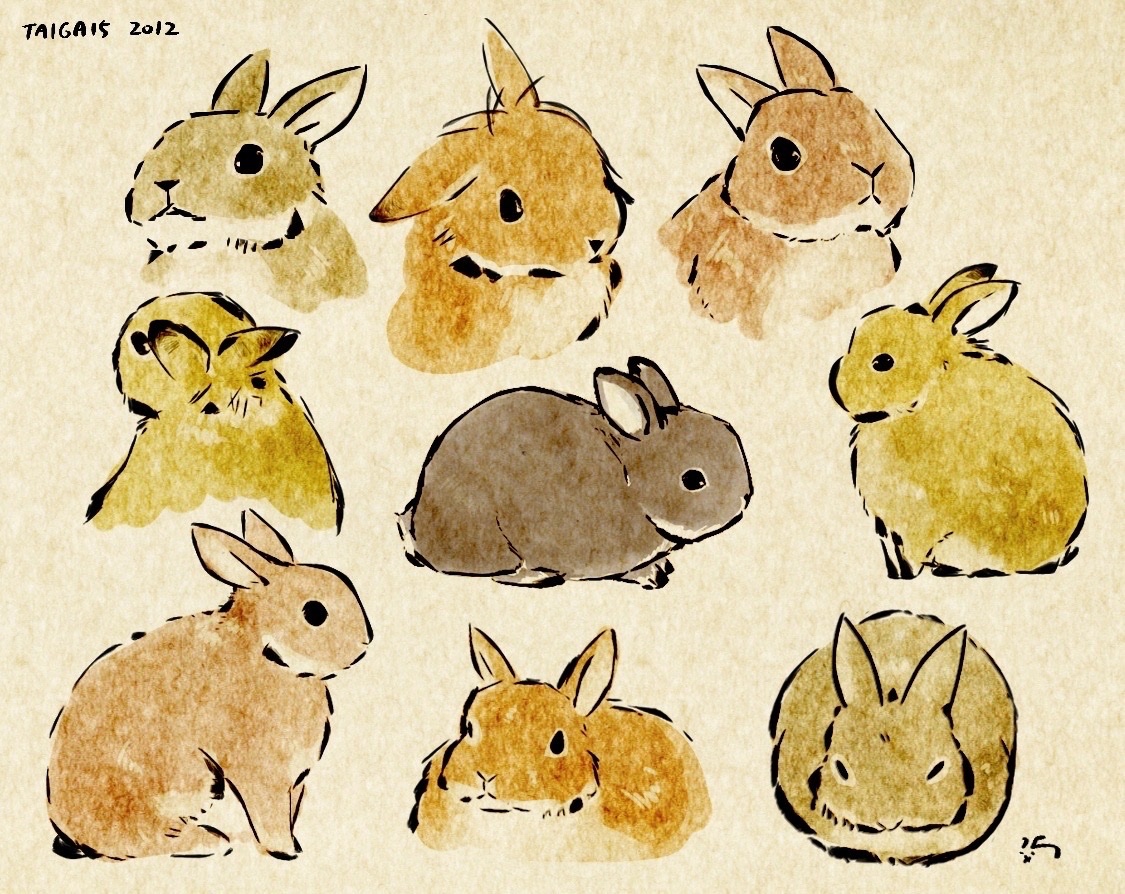 これは(たぶん)最初のうさぎモデル募集で描いた絵。当時はうさ好きになりたてのホヤホヤで、あまりのかわいさにふるえたものです。いろんなとこでヘッダーに使っているよ。