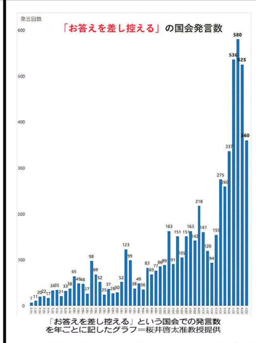 「お答を差し控える」の数(東京新聞電子版より)