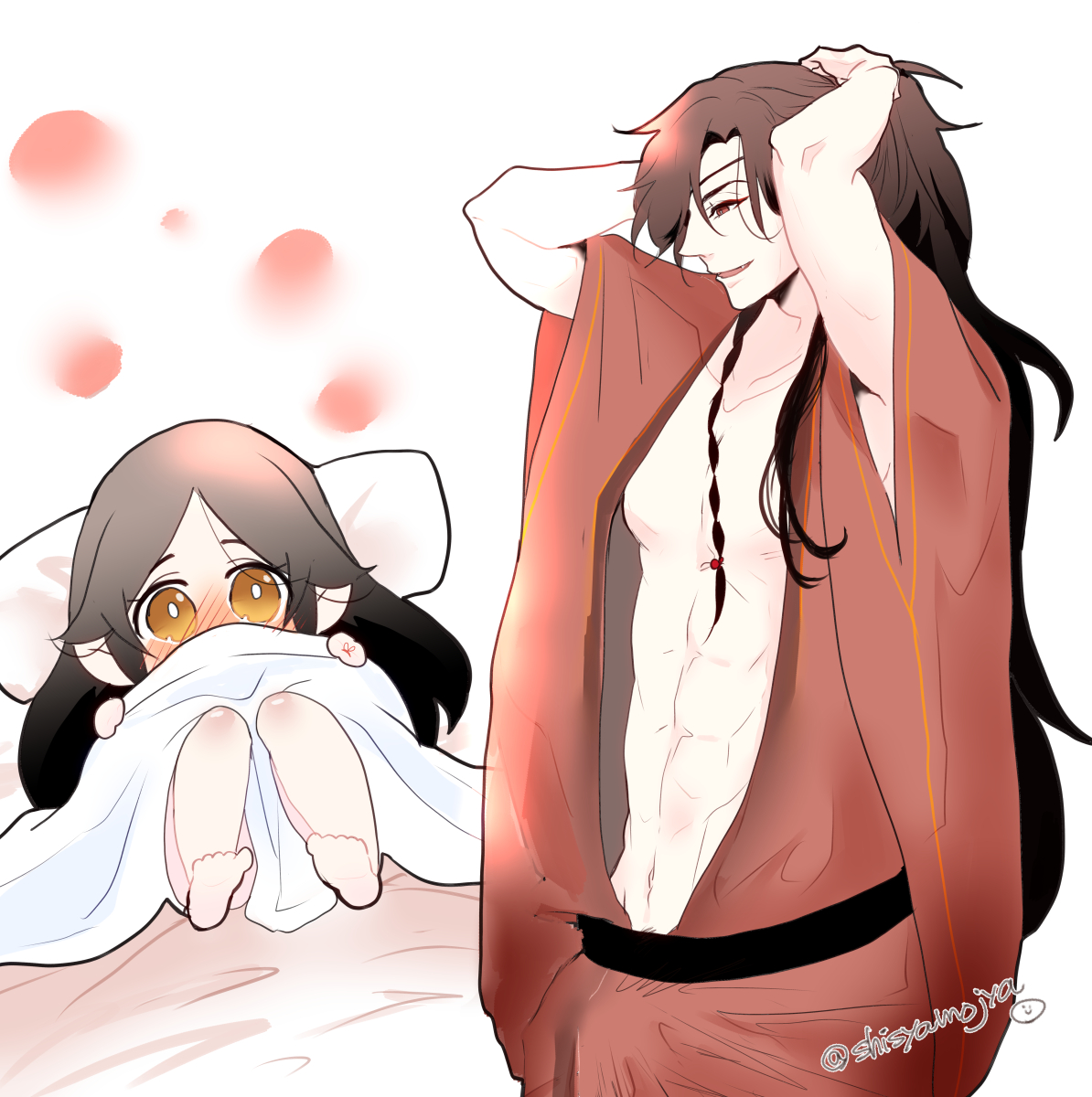 抱っこしたい殿下vs抱っこしたい花城。の落書き。 (力持ち殿下が、三郎を抱き上げているのを見るもの好きだけど、殿下が抱き上げられているのも見たい・・!という私の葛藤)