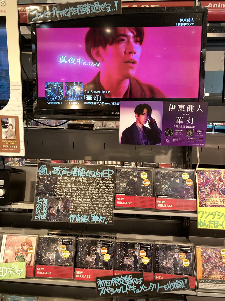 渋谷スクランブル交差点目の前にあるTSUTAYA B2Fにて、#伊東健人 #華灯 のコーナーを発見👀✨ ありがとうございます🙇 皆さんもぜひ行ってみてください🚶‍♂️🚶‍♀️