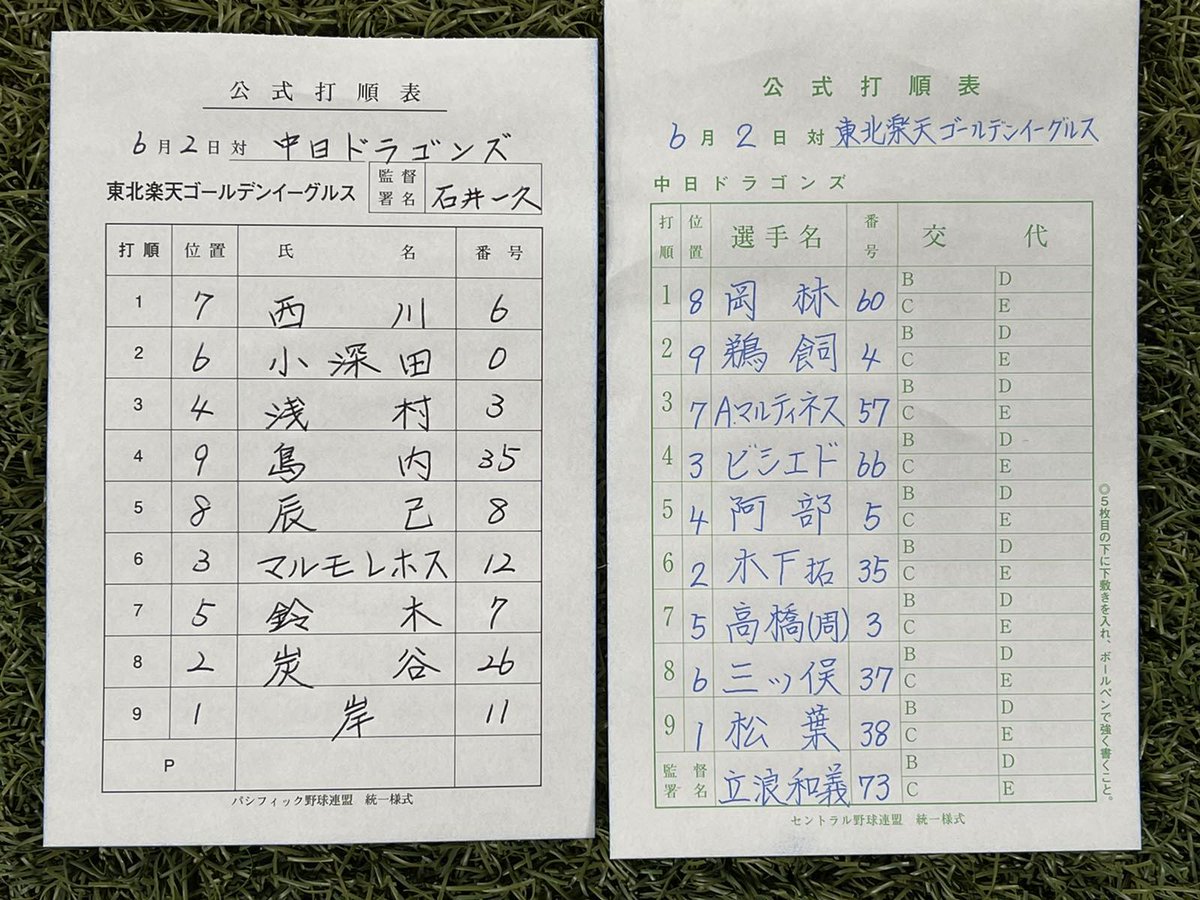 酒居知史選手、ブセニッツ選手も今日一軍登録です。