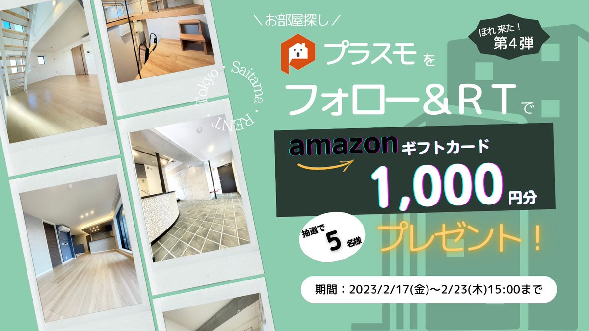 / 祝★フォロワー1000人突破‼️ ありがとうキャンペーン✨ (本音はもっと認知されたい) \ 抽選で5名様に1000円分の #Amazonギフト券 が当たる🎁 参加方法 ① @Plus_ONE_KANTO  をフォロー ➁このツイートをリツイート ③当選者様へDM ~2/23(木)15時迄 #キャンペーン #賃貸 #プレゼント企画