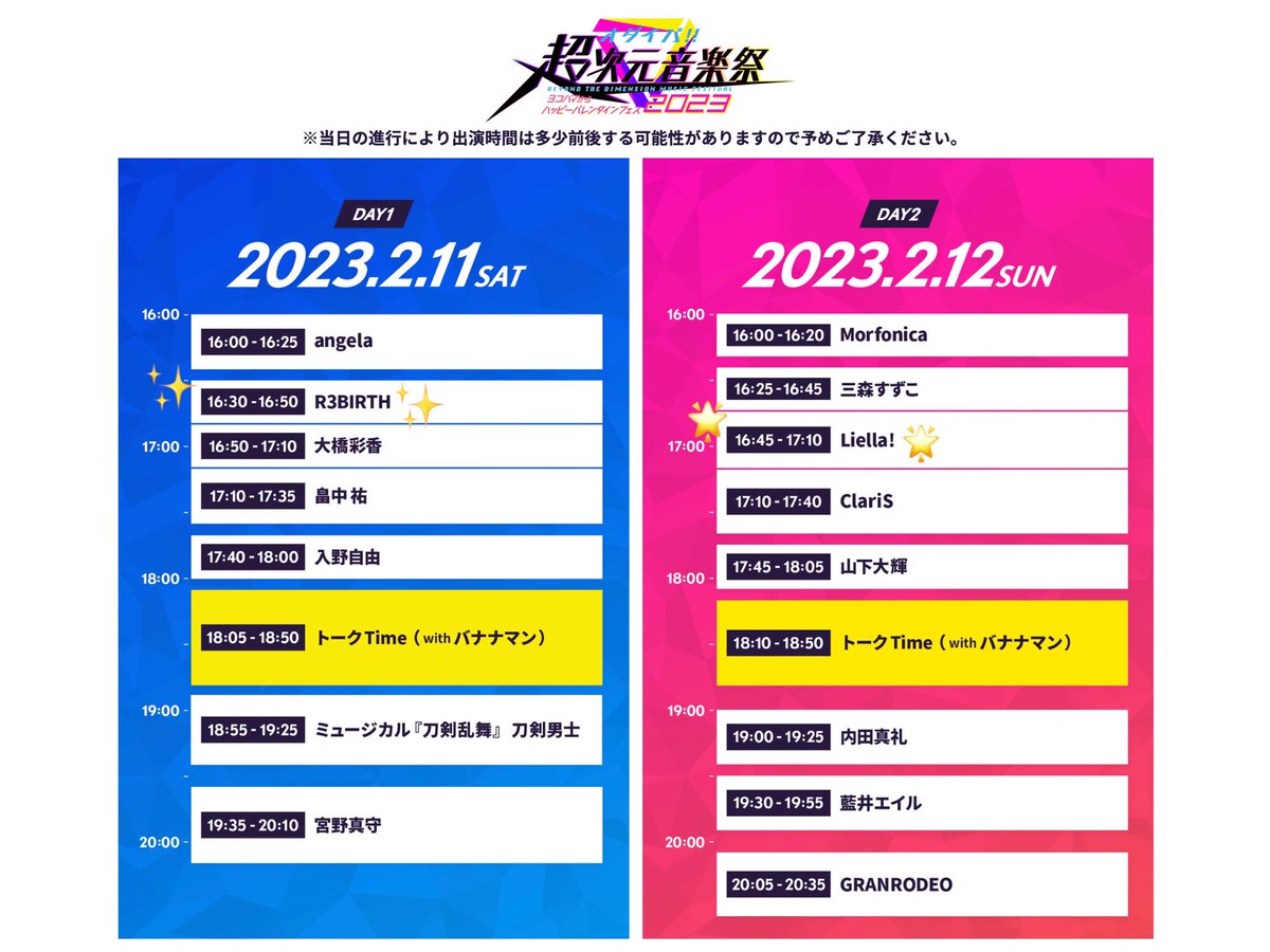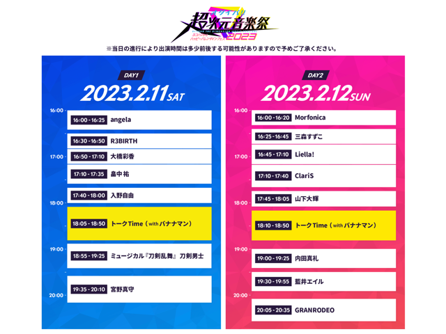 #超次元音楽祭 のタイムテーブルが発表されました📢