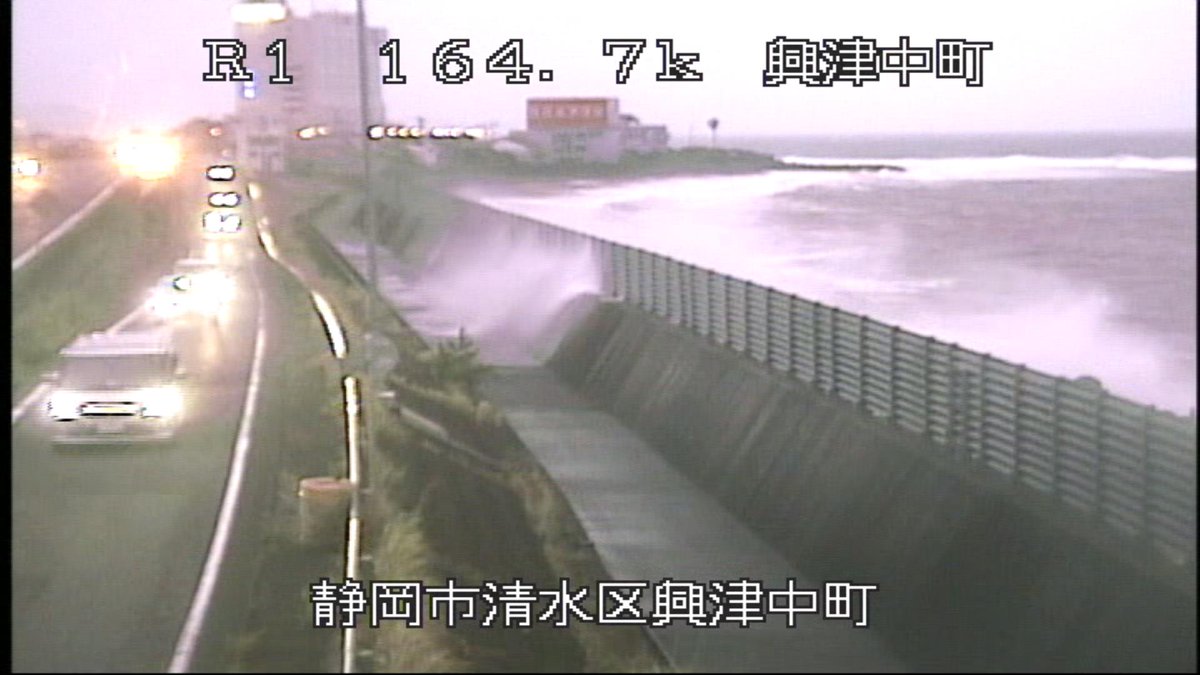 #国道1号 台風16号の接近に伴う高波のため、国道1号BP 下り線 興津ICの入口・出口について、1日14時10分より #通行止め を開始しました。cbr.mlit.go.jp/shizukoku/inde…