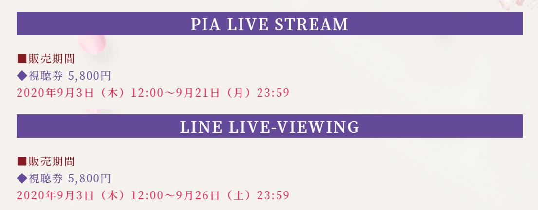 特典付き・数量限定の「プレミアム視聴券」については、9/7(月)0:00以降に予約キャンセル分が発生する可能性がございます。