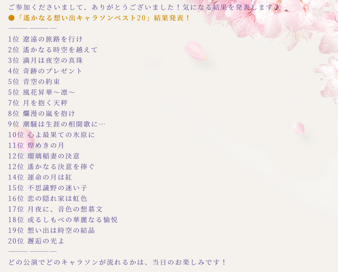 \「遙かなる想い出キャラソンベスト20」結果発表/