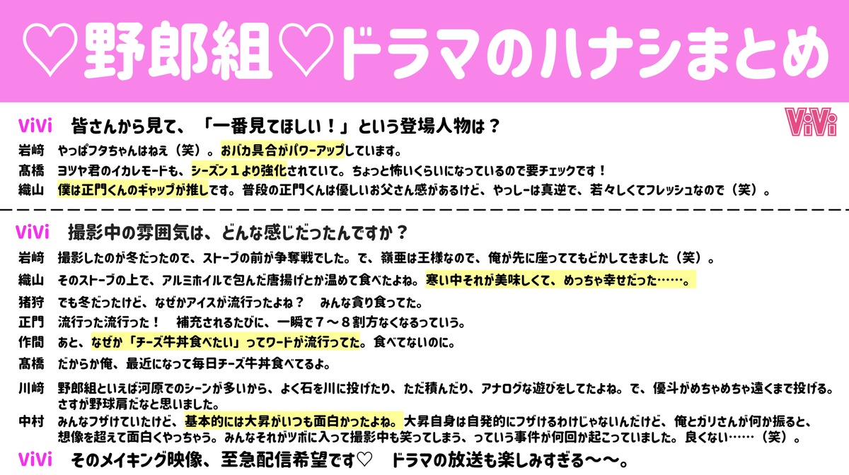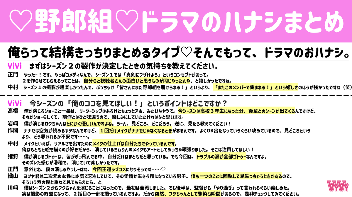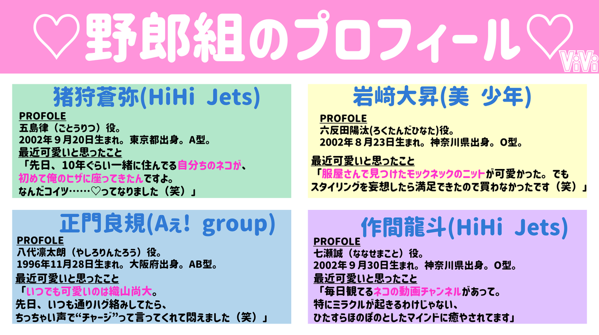 『恋の病と野郎組Season2』に出演するジャニーズJr.のみなさんにViVi限定のユニットでトークをしてもらいました♡お互いにどう思っているか詳しく知れちゃうのエモすぎるし、幸でしかないです...これ読んで今日の野郎組も待機するしか...