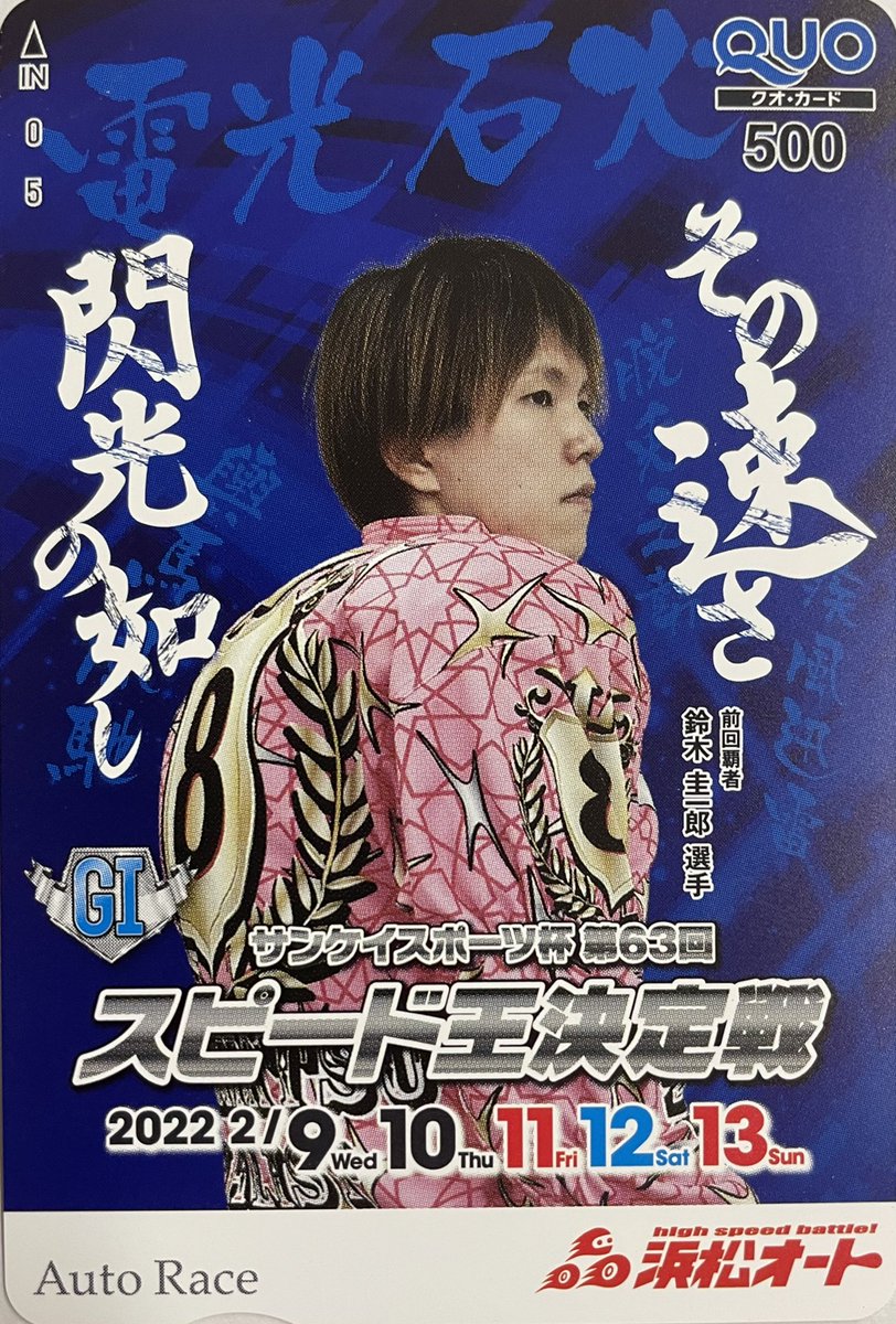 #浜松オート にて本日から開幕している「 #第63回スピード王決定戦」の開催を記念して、大会オリジナルQUOカードを抽選で5名様にプレゼント! 地元の #鈴木圭一郎 選手に期待です! 〈応募方法〉 ①@chusporace をフォロー ②この投稿をRTで完了! 2月15日(火)締め切り