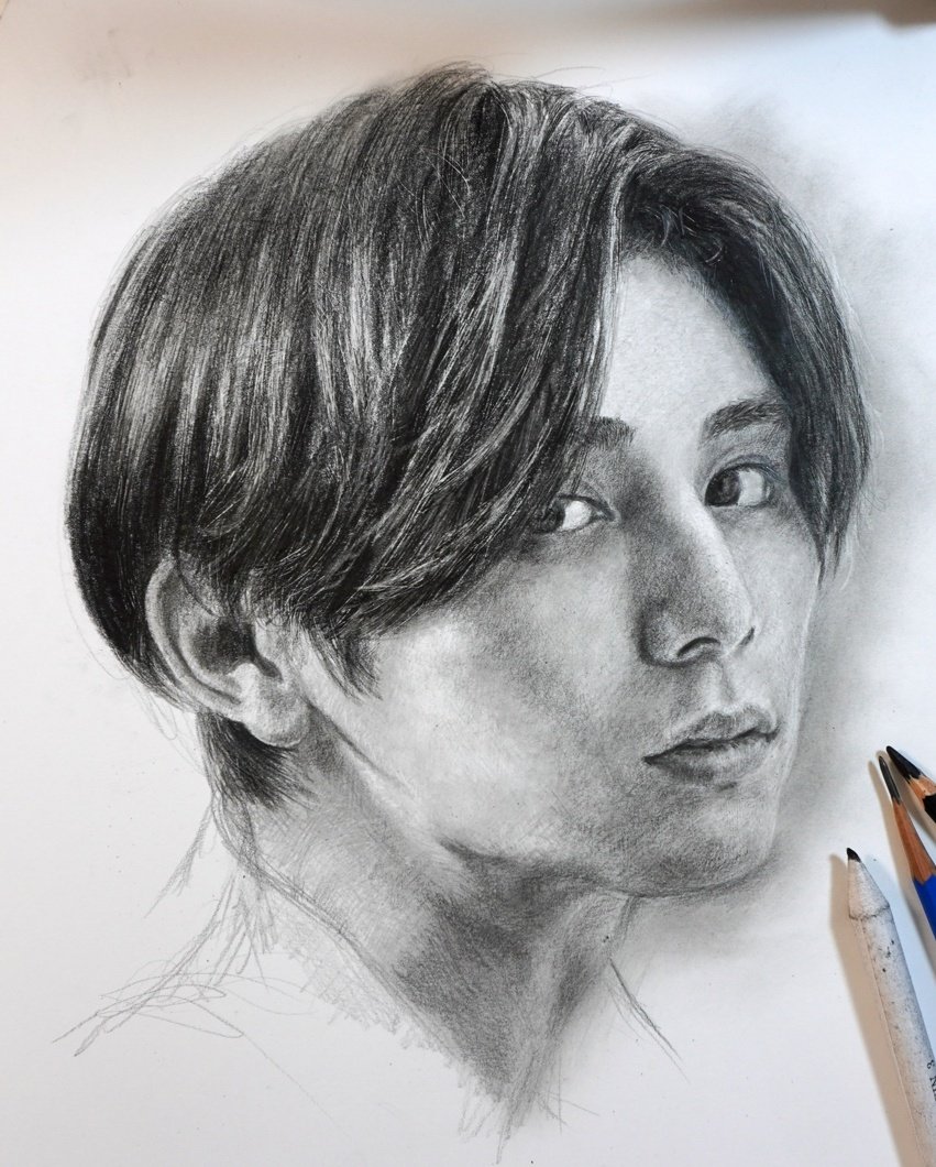 まさに美青年! #HeySayJUMP #山田涼介 さんの #鉛筆画 です。 ※描画にあたり、ご本人に似せるという難しさを つくづく感じながら、新たに描き直しを経て、完成させることが出来ました。 (size A4・ケント紙)