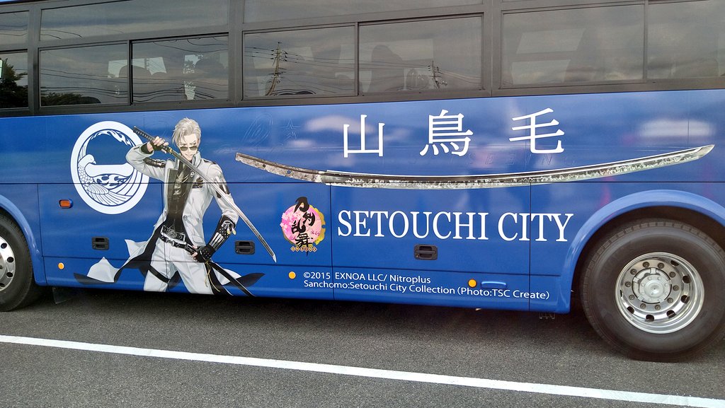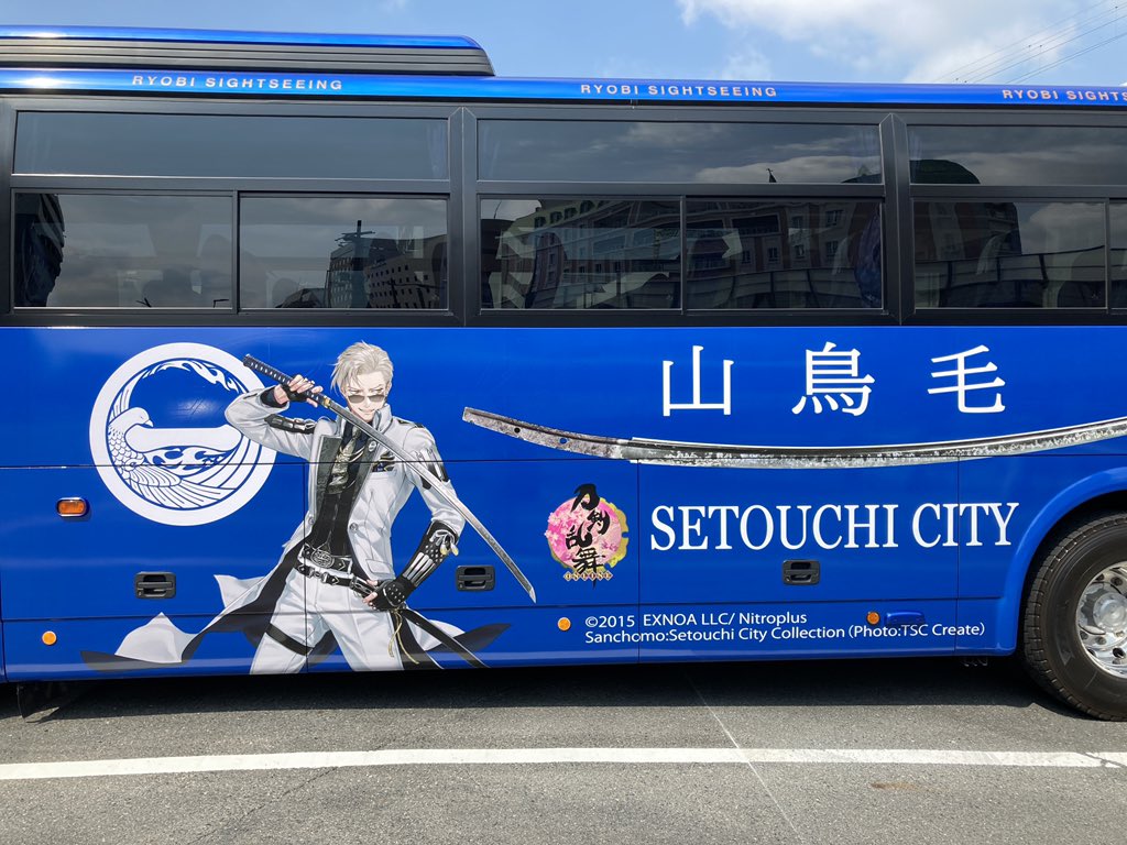 昨日、長船刀剣博物館の外へ出たら…居ました!山鳥毛バス!!傍に居た添乗員さんに撮影して良いですか?と聞いたら「ぜひ撮って下さい😆✨このバス、今回のツアーだけなんですよ」とおっしゃってました。#長船遠征