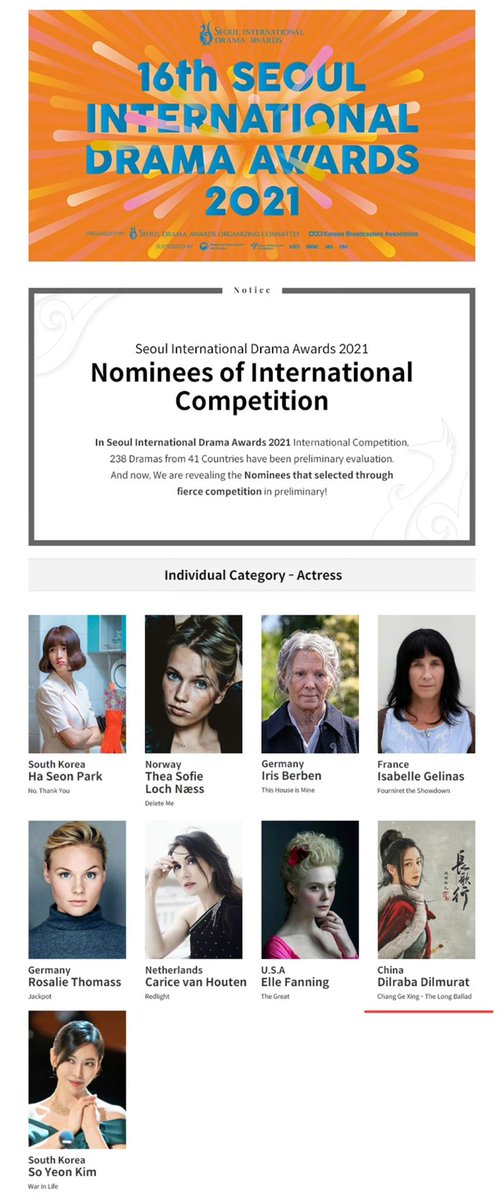 #Dilireba receives a nomination for Beat Actress at 16th Seoul International Drama Awards 2021 and #TheLongBallad has also been nominated under Best Serial Drama!