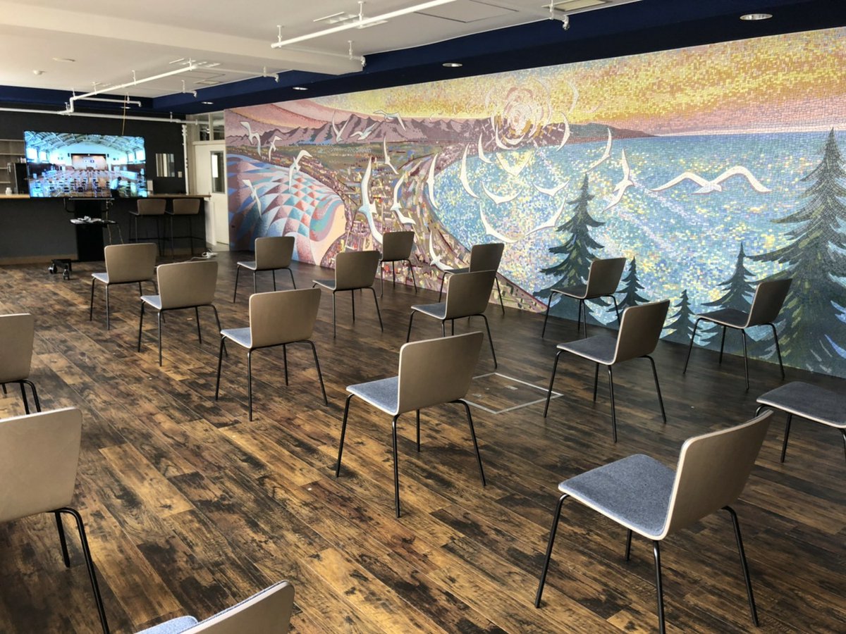 本日、函館稜北高校の閉校式が行われます🏫 現在、会場準備中!密集回避のため校内数カ所に設置されたモニターを介して参加するスタイル。稜北高校、お洒落なカフェスペースもあるんですね✨ 閉校式の模様はNCVで10月3日より放送予定