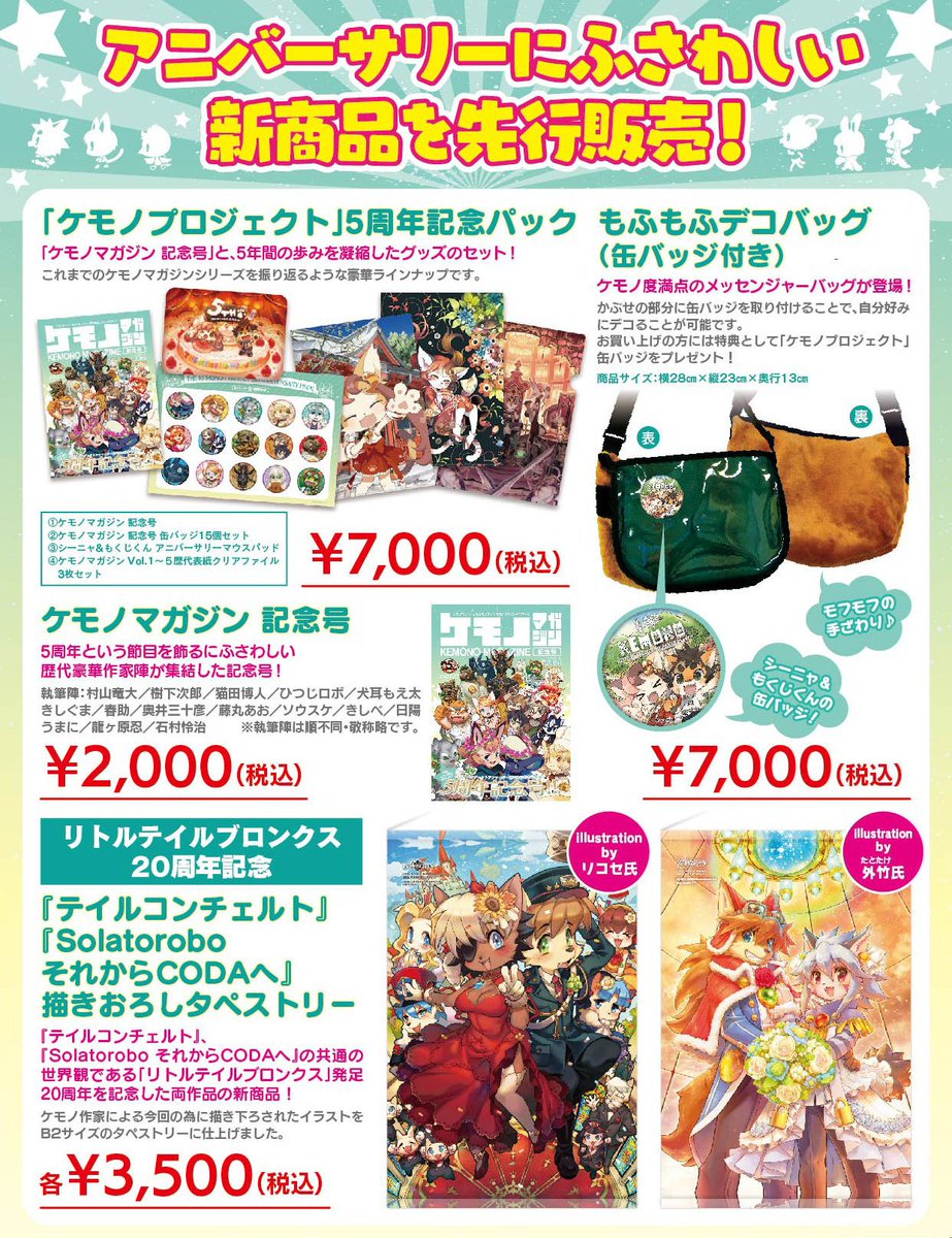 9月23日(日)開催の「関西けもケット7」にて先行販売される「ケモノプロジェクト」5周年と「リトルテイルブロンクス」20周年を記念した新商品の情報を大公開だみゃ~っ!😊✨