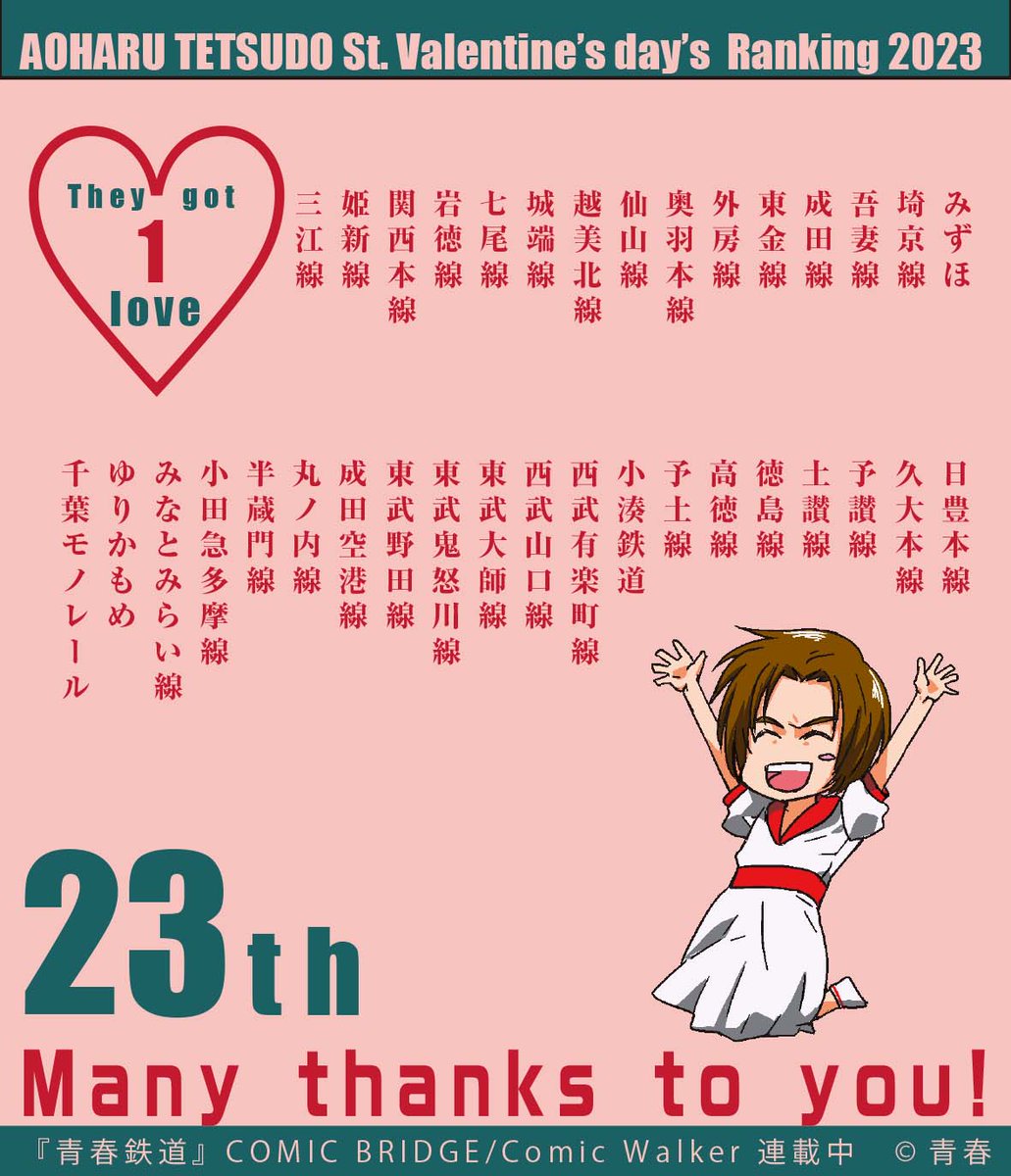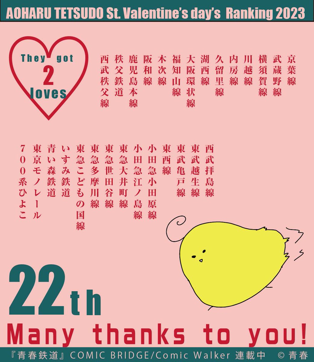 今回同順位になっております路線さんたちについてですが、どの順位もセットで送られてきていたというものではなく、バラバラに送られてきていたものを最終的に集計したらこうなった…という結果でした。
