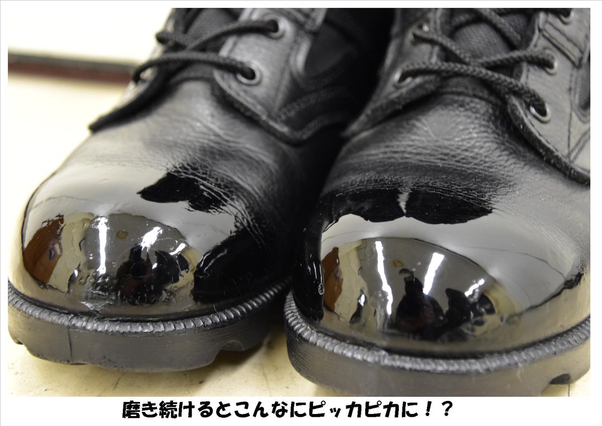 中の人です。 本日は自衛官の特技、靴磨きをお見せします。 入隊時に教育部隊で習うので自衛官は全員できます。 身だしなみは足元から!