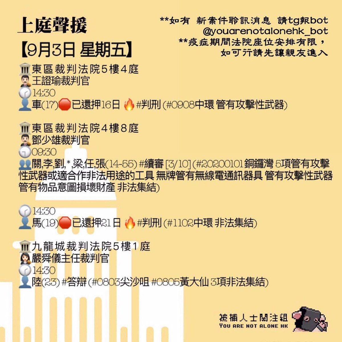 罪名は攻撃性武器の所持、非法集結、中大戦で逮捕された人も。著名人はおらず、全員名もなき抗議者達です。#香港デモ