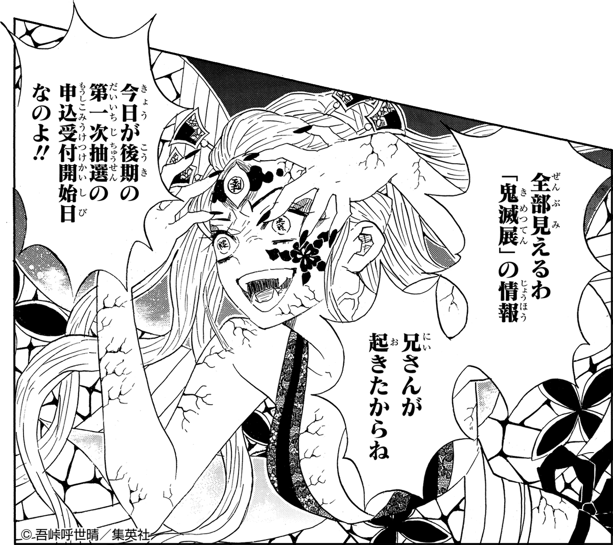 『#鬼滅の刃』吾峠呼世晴原画展 仙台会場では、全日日時指定制となっています。また前期後期とわけて抽選先行販売と、一般発売を設けております。詳しくはローソンチケットのHPをご確認ください。l-tike.com/event/kimetsu2…