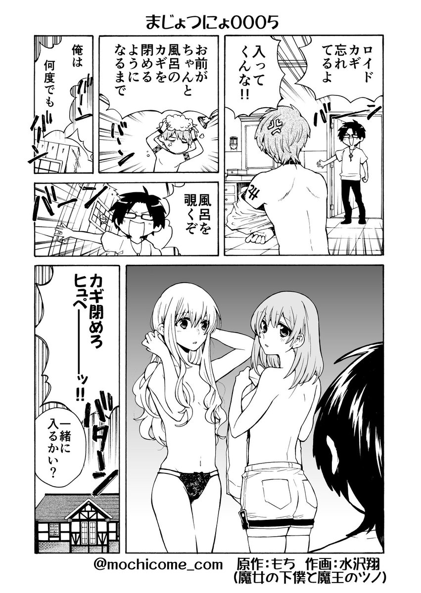 【まじょつにょ】ベティがロイドの入浴シーンに遭遇しないように、アルセニオはがんばっているのです(ロッサリ) #魔女ツノ