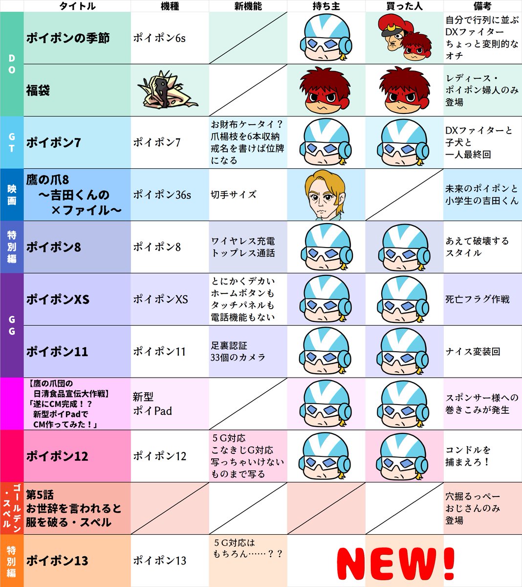 とりあえず、歴代ポイポンまとめ2021年改訂版です。