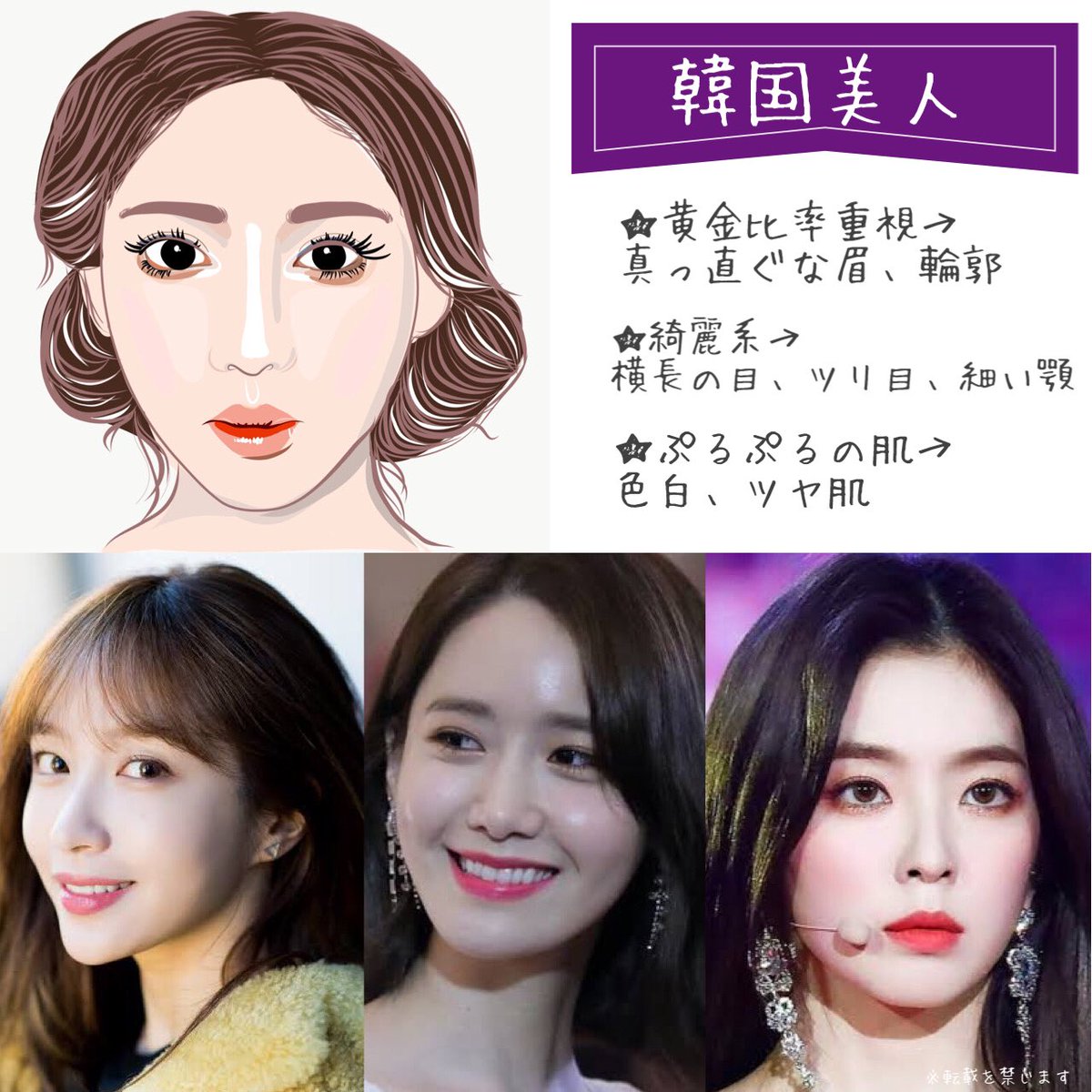 目の横幅と鼻翼幅が同じが良いと言われますがこれは完全に誤解。 たいていの日本、韓国、中国人は鼻翼幅の方が広くなり、アメリカ人は目幅が広くなる。※勿論目尻切開メイクや目頭切開アイラインは無しの話 以下4人は全員美人だが、誰も黄金比の方程式には当てはまってない⤵︎