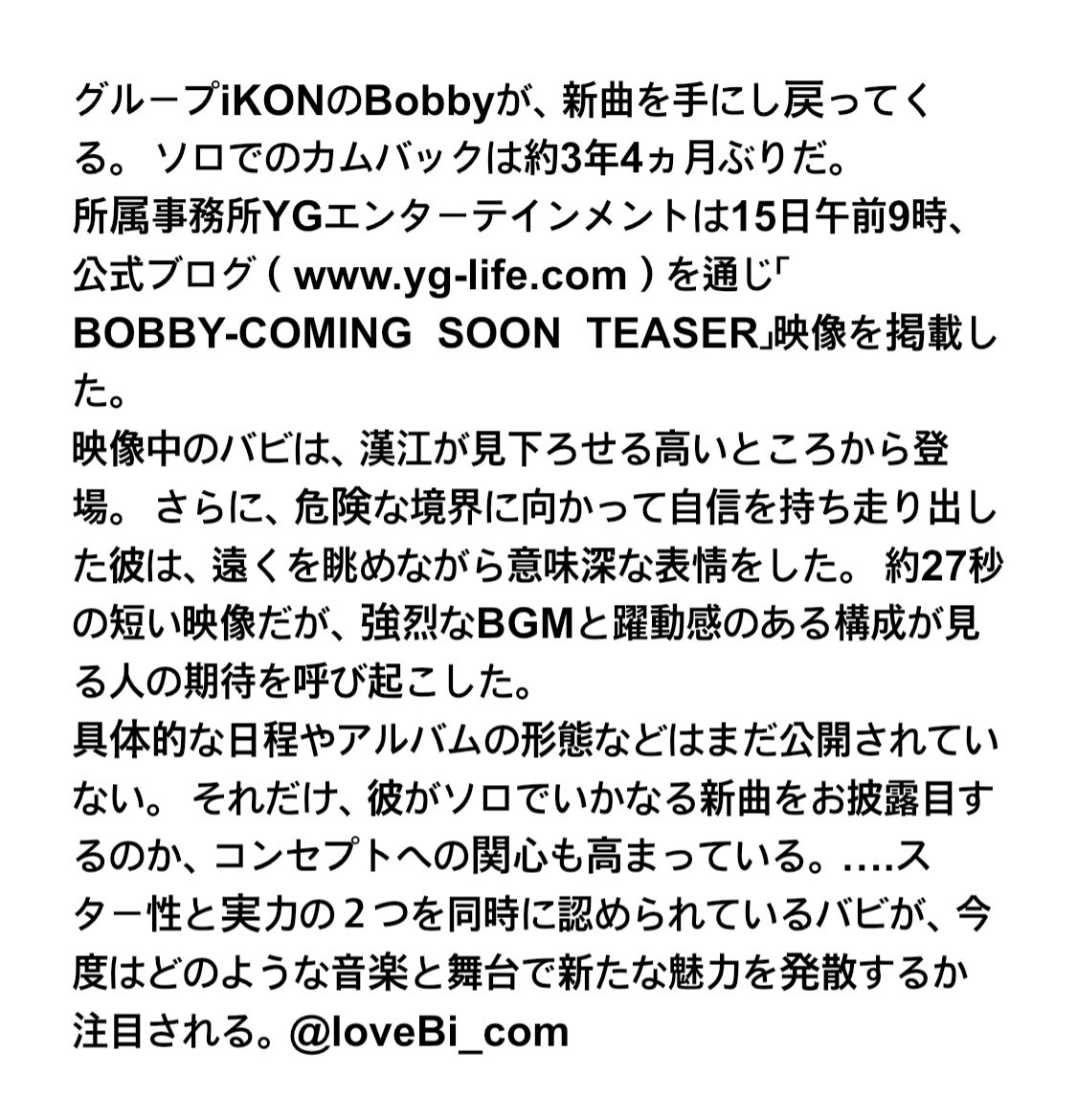 【記事訳: iKON バビ、ソロでカムバ】