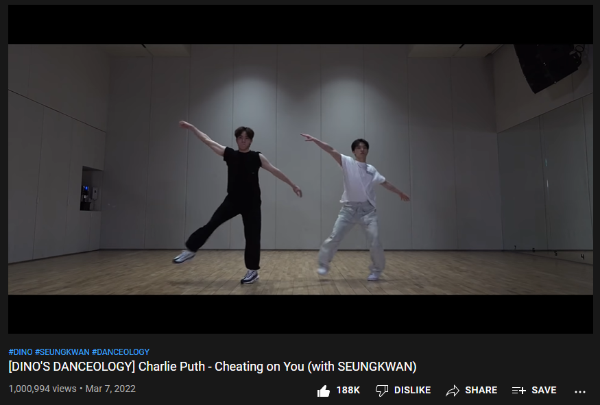 DINO'S DANCEOLOGY with Seungkwan has now surpassed 1,000,000 views on Youtube! 🎉