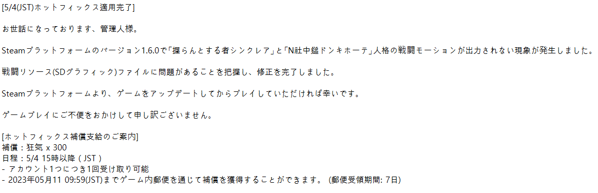 [5/4(JST)ホットフィックス適用完了]