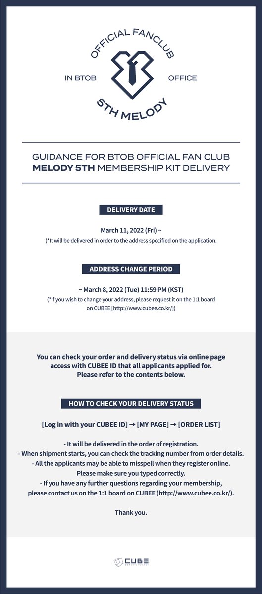 [공지] 비투비 OFFICIAL FAN CLUB MELODY 5기 MEMBERSHIP KIT 배송 안내